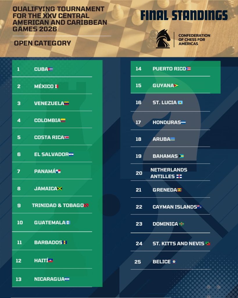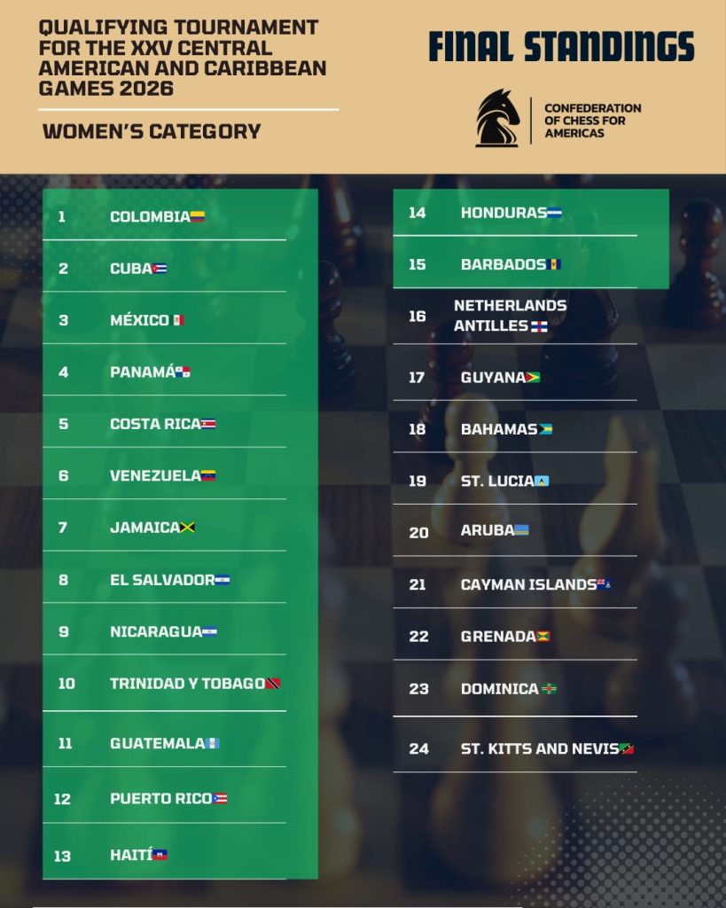Los Clasificatorios a los XXV Juegos Centroamericanos y del Caribe 2026 se realizaron en la modalidad híbrida a través de la plataforma Tornelo entre el pasado 17 y 18 de enero acorde a las Regulaciones FIDE de Ajedrez en Línea.